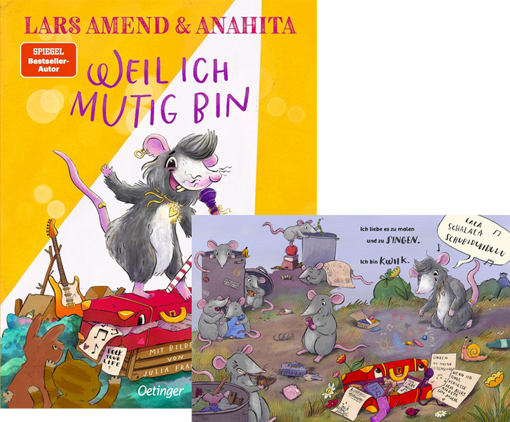 Selbstbewusstsein bei Kindern stärken: Steh zu dir und zu dem, was du liebst! Die kleine Ratte Kwiik liebt es zu singen, aber die anderen Ratten finden das total nervig und lachen Kwiik aus. Traurig zieht Kwiik los, um einen Ort zu finden, an dem die Ratte die Liebe zur Musik ungehemmt ausleben kann. Beim großen Schrottplatz-Festival bekommt Kwiik schließlich die Chance, vor anderen zu singen. Ob Kwiik sich traut, ganz zu sich selbst und zu der großen Leidenschaft zur Musik zu stehen? Ein wunderschönes Bilderbuch, das Klein und Groß zu Selbstliebe auffordert und richtig viel Mut macht.